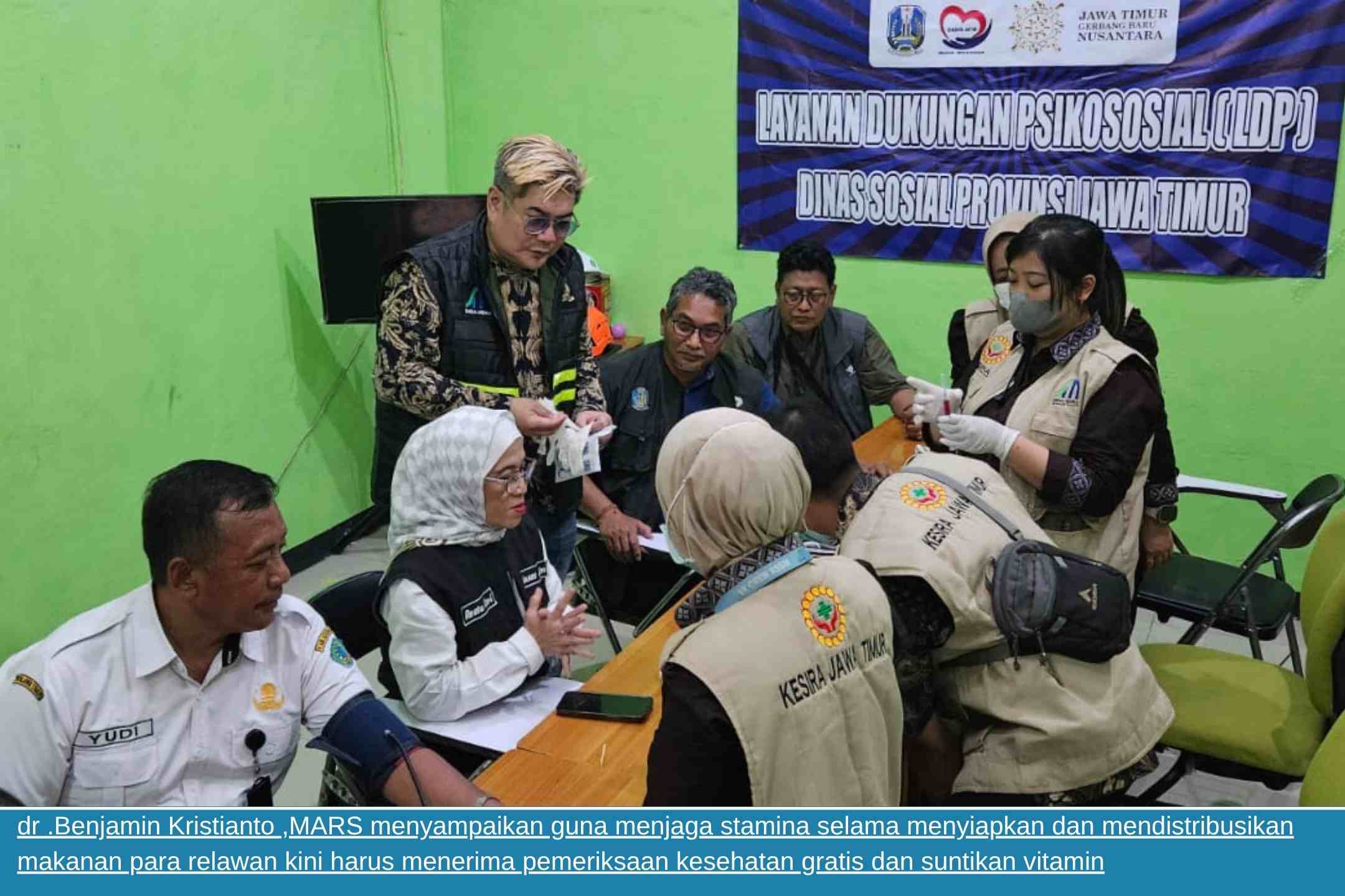 Menurut dr .Benjamin Kristianto ,MARS menyampaikan guna menjaga stamina selama menyiapkan dan mendistribusikan makanan, para relawan kini harus menerima pemeriksaan kesehatan gratis dan suntikan vitamin.dr.Benjamin yang juga sebagai Anggota Komisi E DPRD Jawa Timur ini memberikan layanan kesehatan gratis bersama rombongan tim medis Klinik Kesehatan Indonesia Raya (KESIRA) pada Sabtu (4/10/2025).dr. Benjamin Kristianto bersama tim medisnya menyalurkan suntikan vitamin kepada 100 relawan di Posko Darurat Ponpes Al Khoziny, buduran Sidoarjo.
